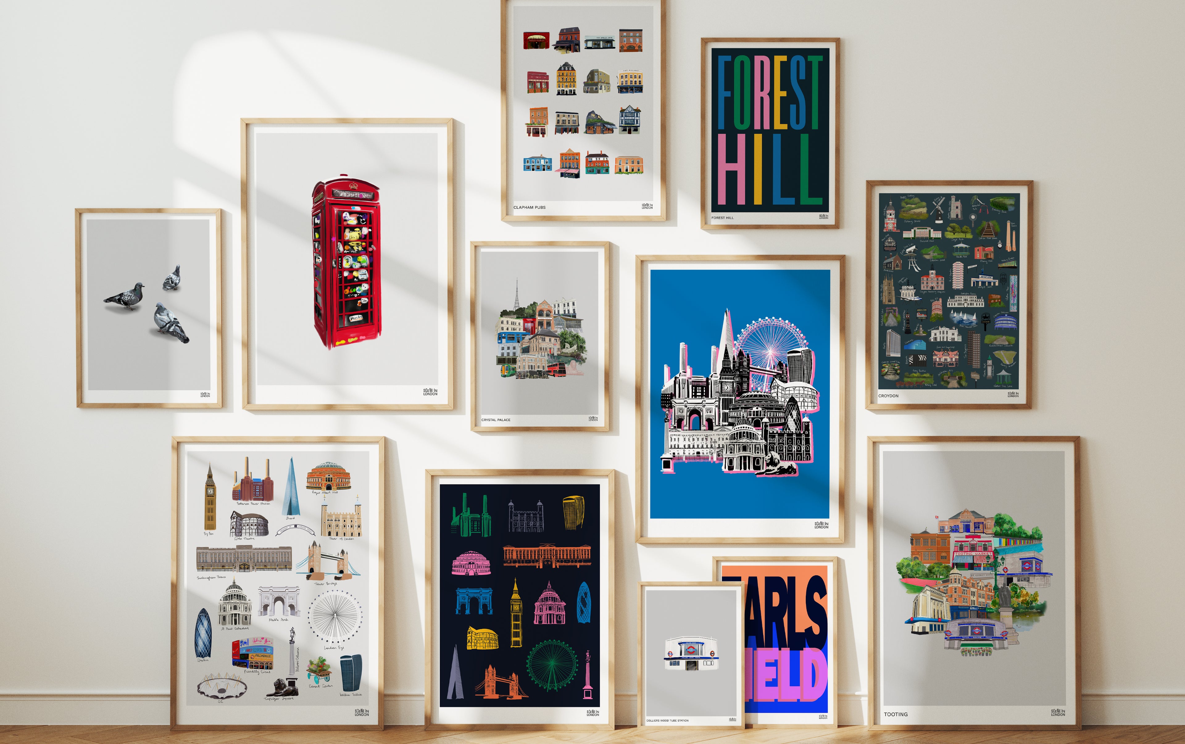 Scene in London illustrations featuring your favourite London neighbourhoods.