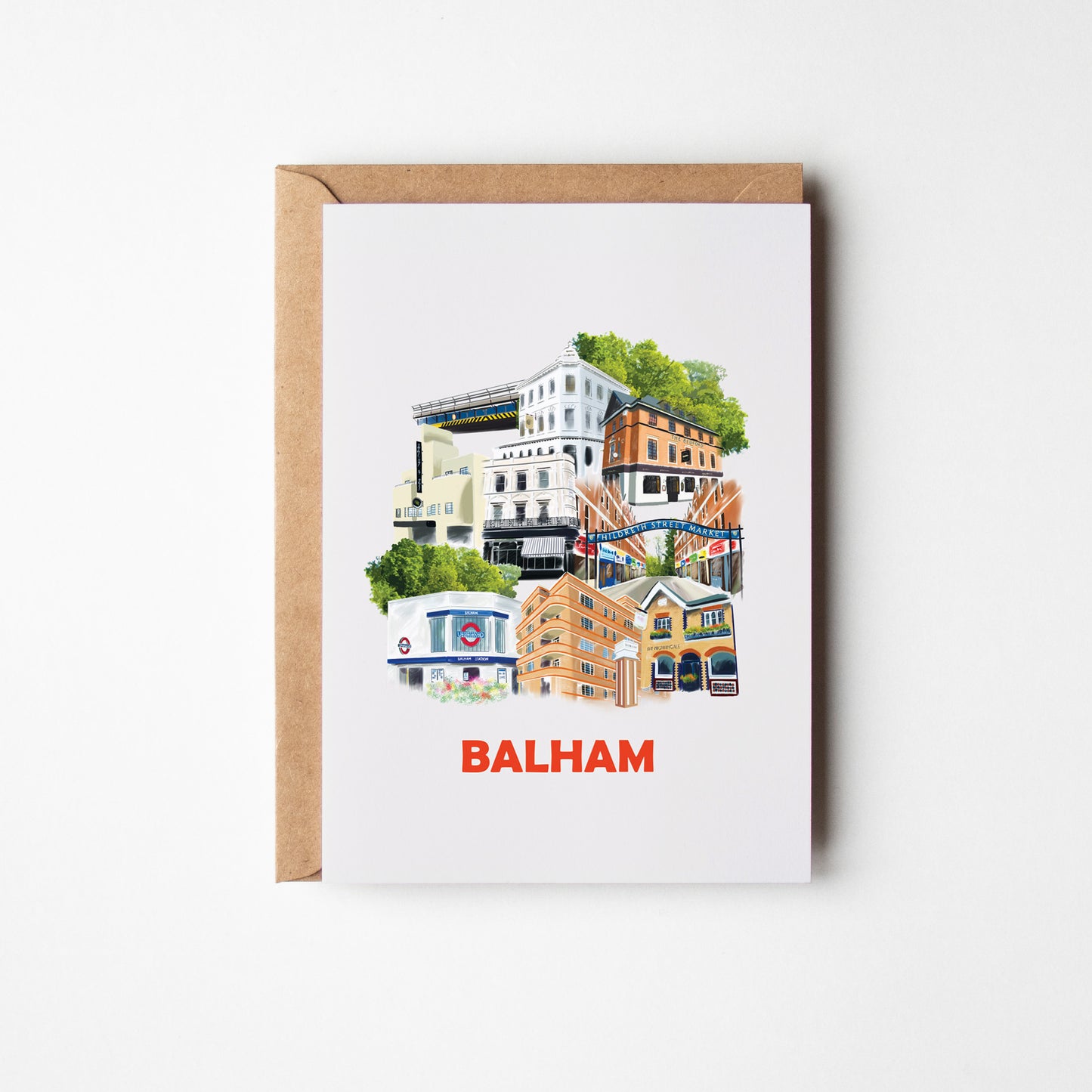 A charming greeting card capturing the variety of diverse architecture in Balham.