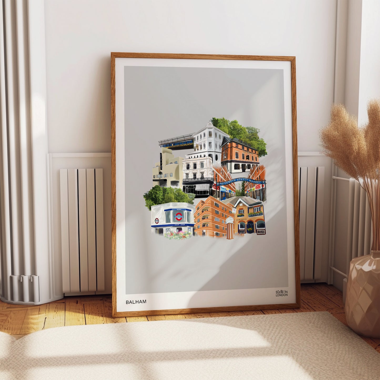 Balham art print featuring illustrations of popular local landmarks.