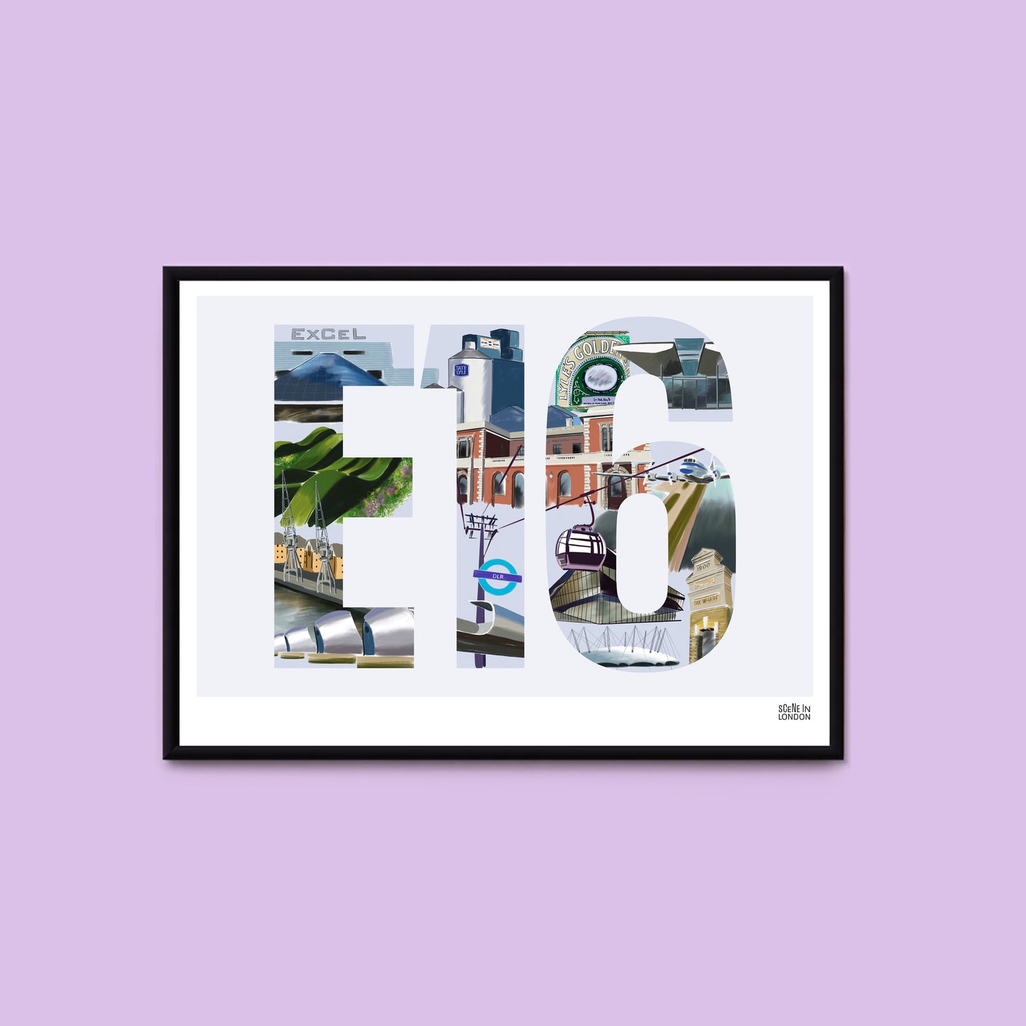 This E16 postcode print is designed and made in London and is perfect for those looking for a unique piece of local art to add to their walls.