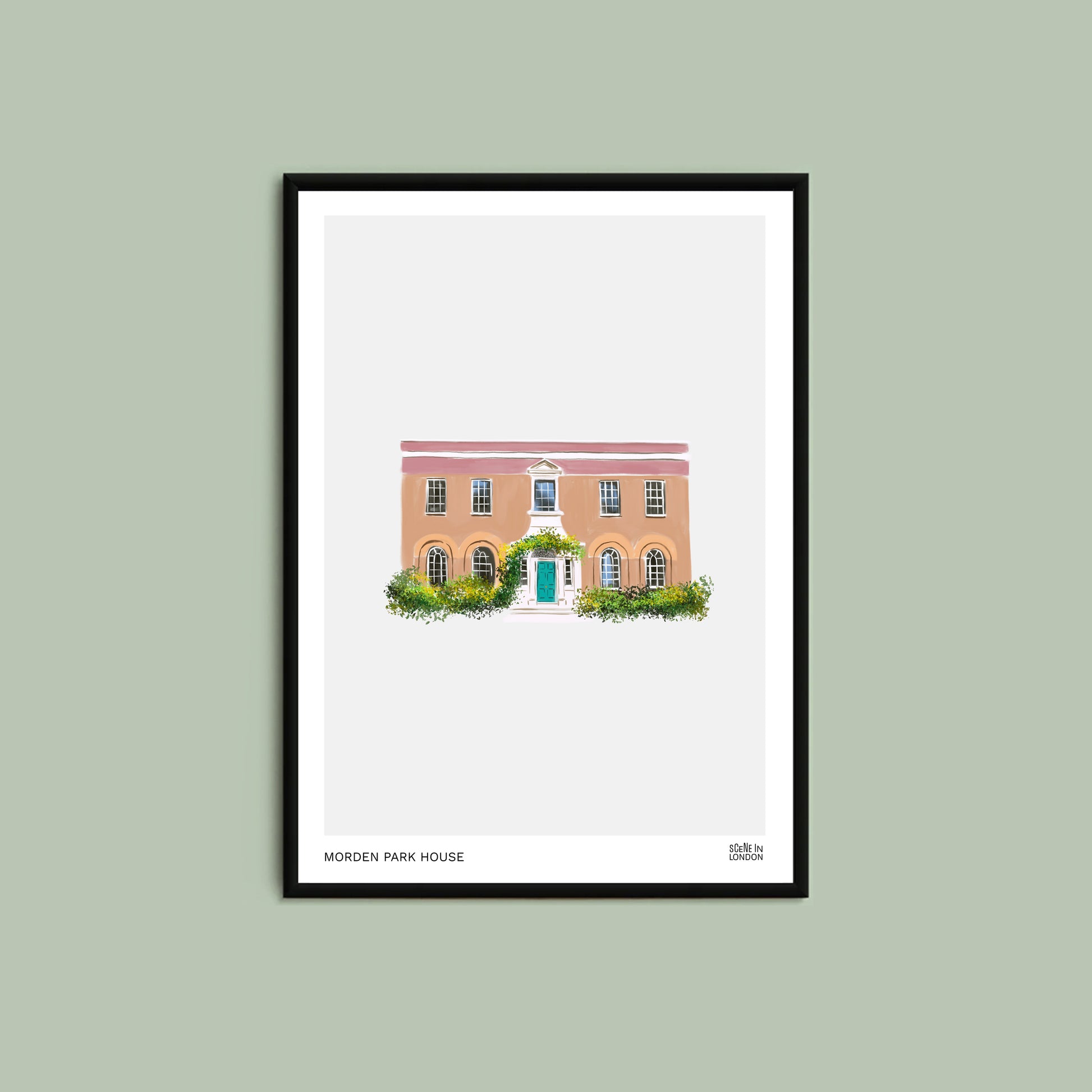 High quality London art print celebrating the Grade II Listed Georgian manor house, Morden Park House. Known for hosting receptions and wedding ceremonies, this artwork beautifully captures this stunning building, and is the perfect gift for anyone with a connection to the venue.