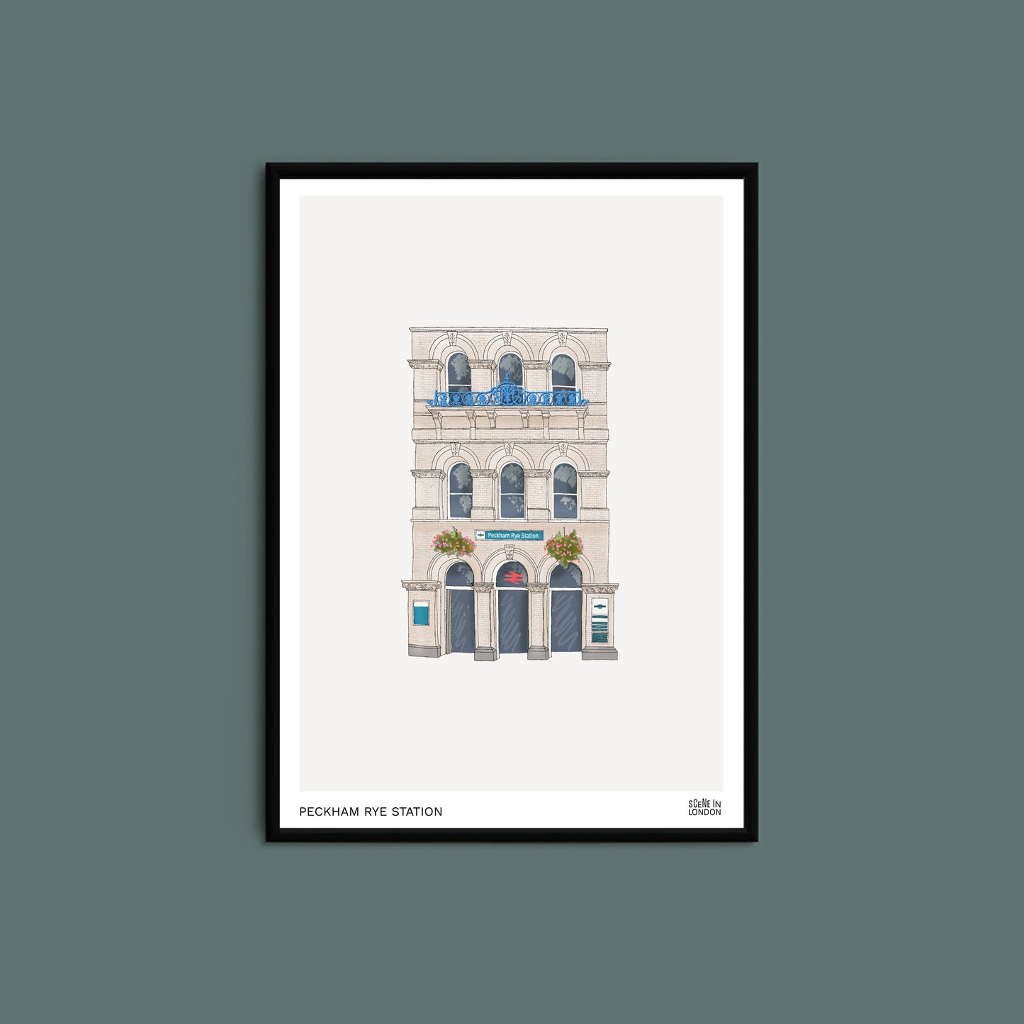An illustration art print featuring Peckham Rye Station.
