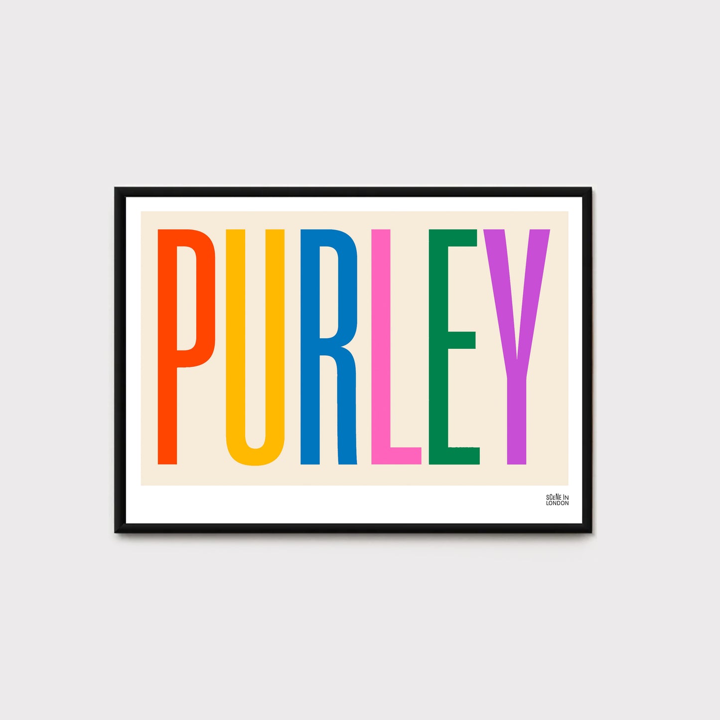 The Purley typographic print has been designed and produced in London. It is printed onto professional archival matte paper with a smooth finish. The print will be delivered in a protective envelope and all the packaging is eco-friendly.