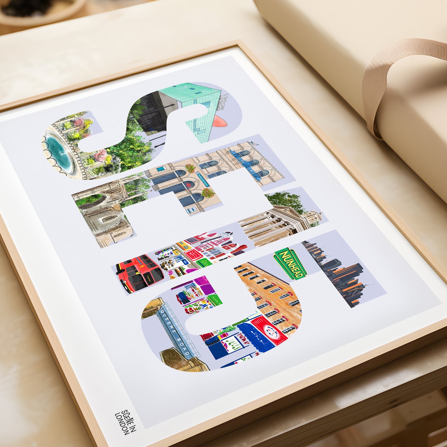 Each artwork celebrates a London neighbourhood or landmark, perfect for decorating your walls or gift giving to those with fond memories of the city.