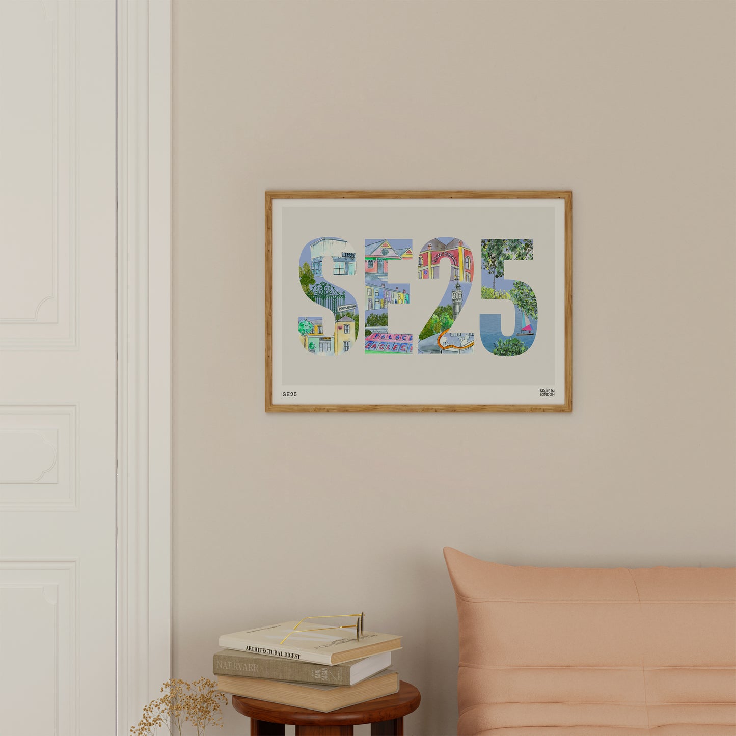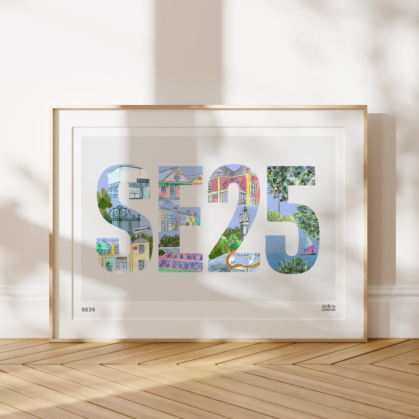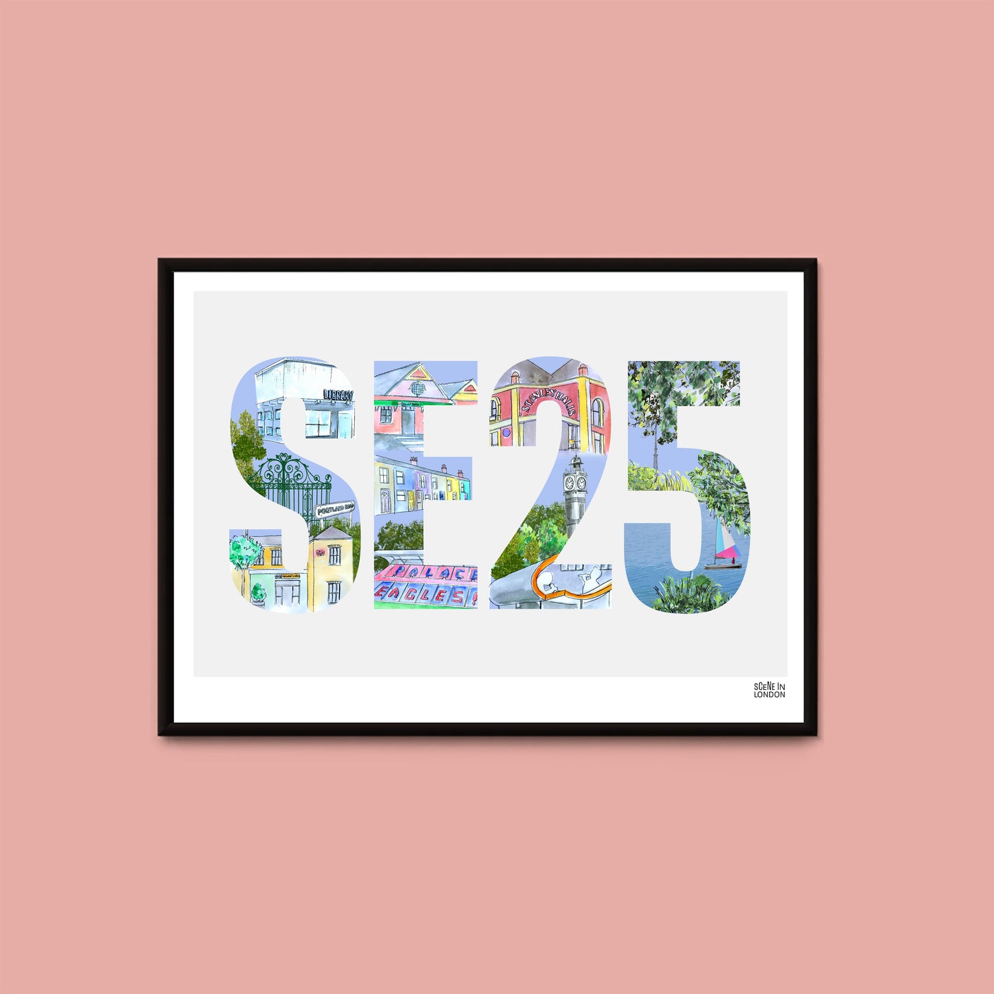 This SE25 postcode print is designed and made in London and is perfect for those looking for a unique piece of local art to add to their walls.