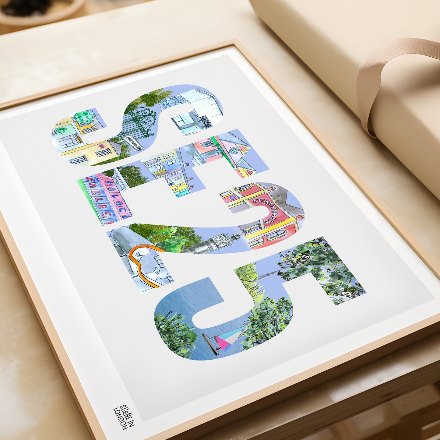 A unique London art print featuring local landmarks in SE25, Croydon.