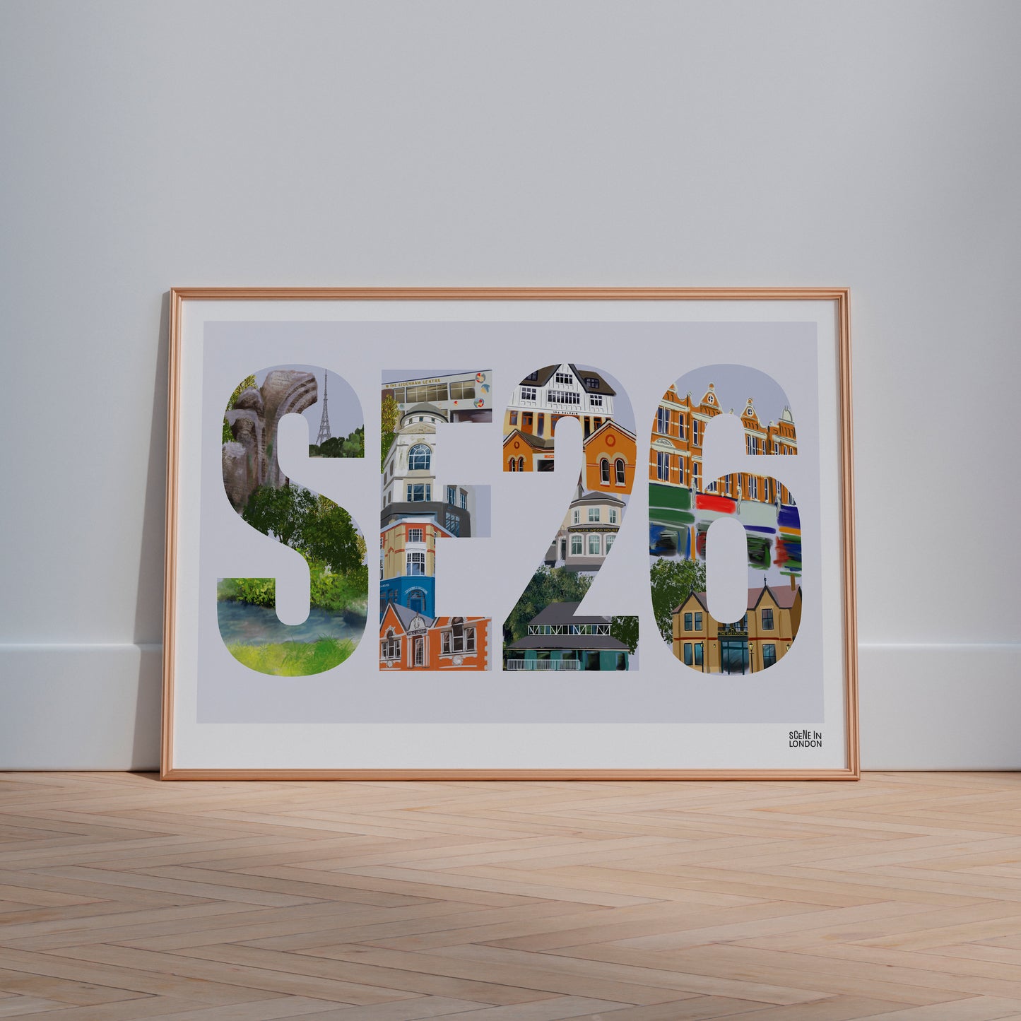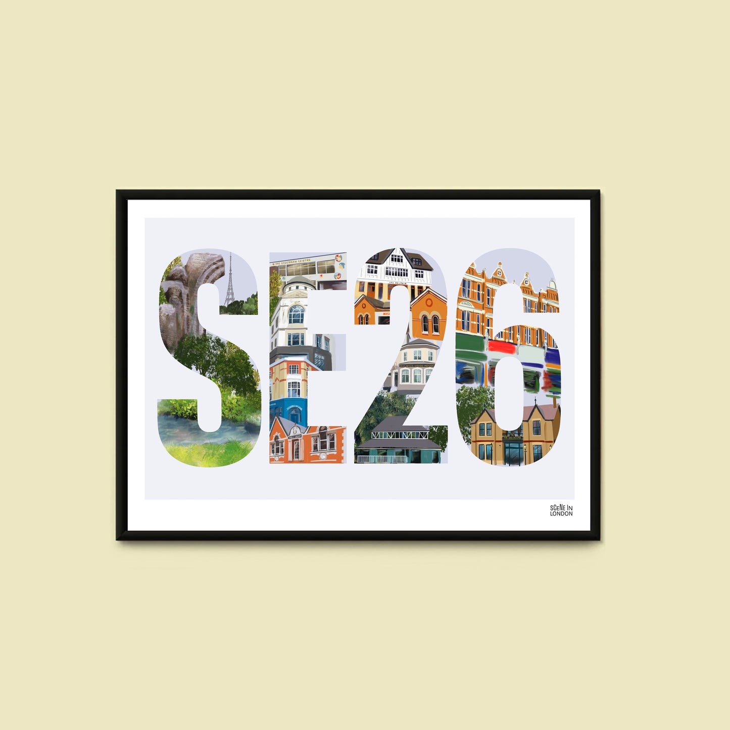 This SE26 postcode print is designed and made in London and is perfect for those looking for a unique piece of local art to add to their walls.